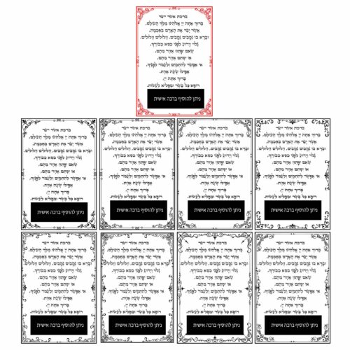 יהדות לוב ידועה בשמירתה הקפדנית על דקדוקי נוסח ודיוק בהלכה, וכך גם בנוסח ברכת אשר יצר. הלוחית שלנו מגיעה עם נוסח עדות המזרח המקובל (הכולל את החתימה: "ברוך אתה ה', רופא כל בשר ומפליא לעשות"), תוך התאמה לדגשים הלשוניים של המגזר, המבטיחים שכל אות וכל תיבה יהיו מדויקות על פי מסורת אבותינו. לוחית זו הופכת למתנה מושלמת עבור יוצאי לוב, המוקירים כל פריט המזכיר להם את בית אבא והמסורת הטהורה.