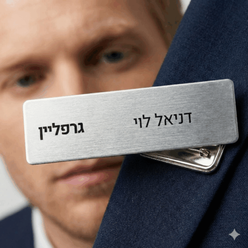 הצוות שלכם הוא הפנים של הארגון. תג שם איכותי הוא ההבדל בין מראה חובבני למראה ייצוגי, סמכותי ומזמין. בגרפליין, אנו מייצרים תגי שם מאלומיניום בסטנדרט הגבוה ביותר, תוך שימוש בטכנולוגיית סובלימציה מתקדמת המבטיחה עמידות וחדות יוצאת דופן.
